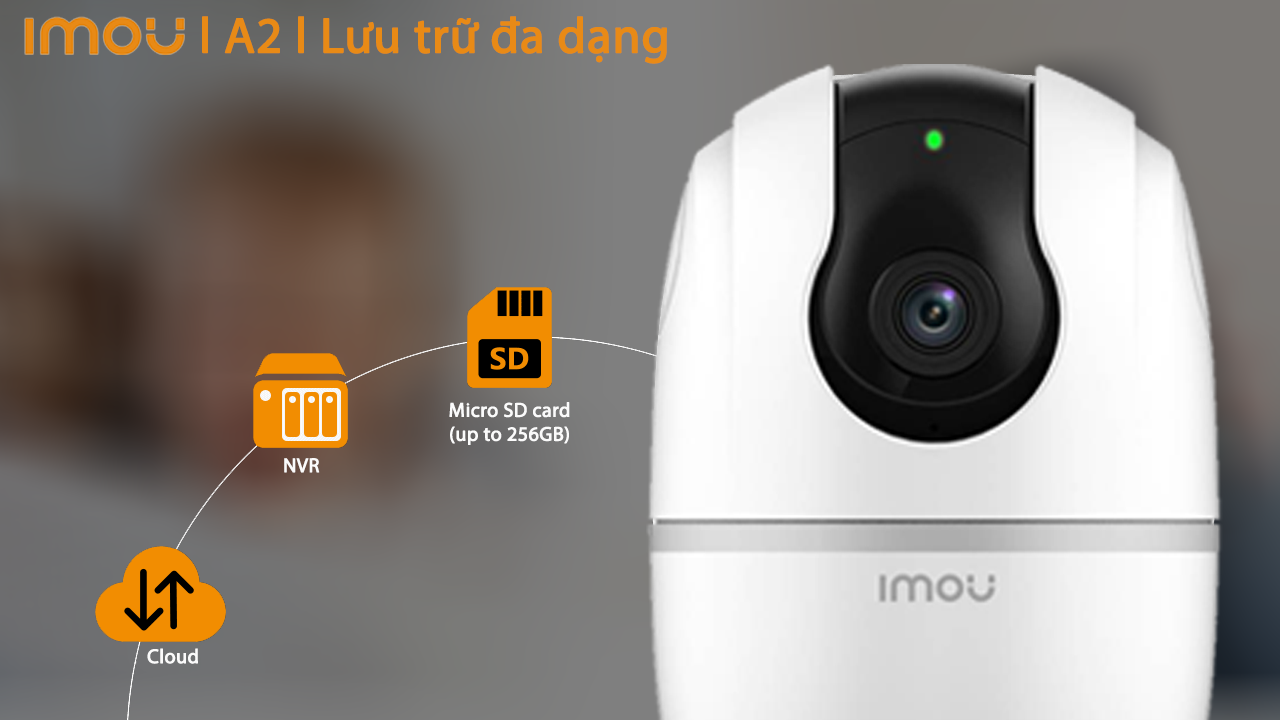 Video được lưu trữ và truy cập dễ dàng thông qua thẻ SD, NVR hoặc Cloud Storage.